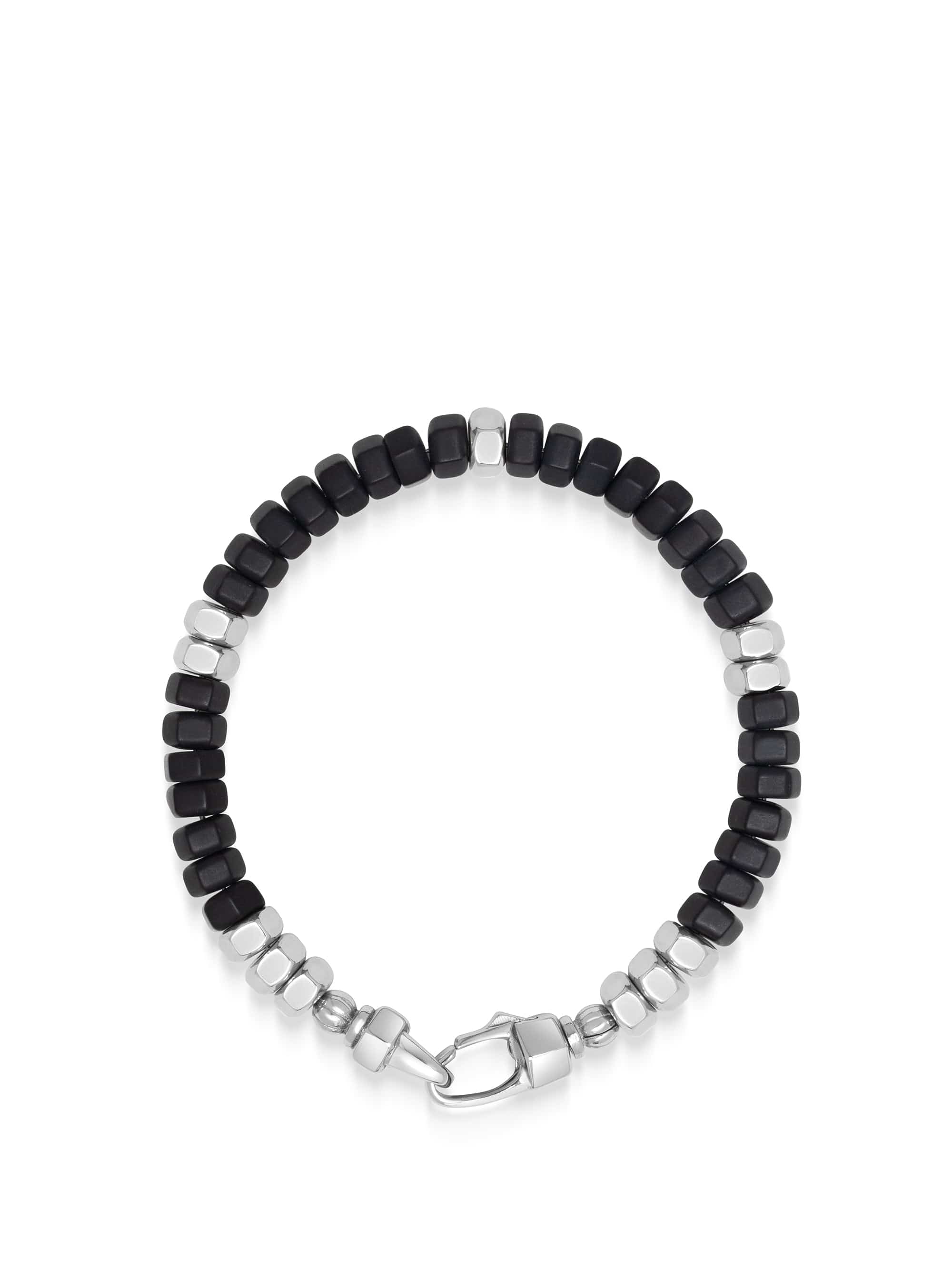 Men's Hexagon Beaded Bracelet with Black Onyx and Silver