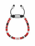 Our classic beaded bracelet is crafted by hand from a strong 100% nylon string and finished with a stainless steel drawstring lock. The bracelet opens by pulling the beads closest to the lock in opposite directions and closes by pulling the small, dangling silver beads in opposite directions.