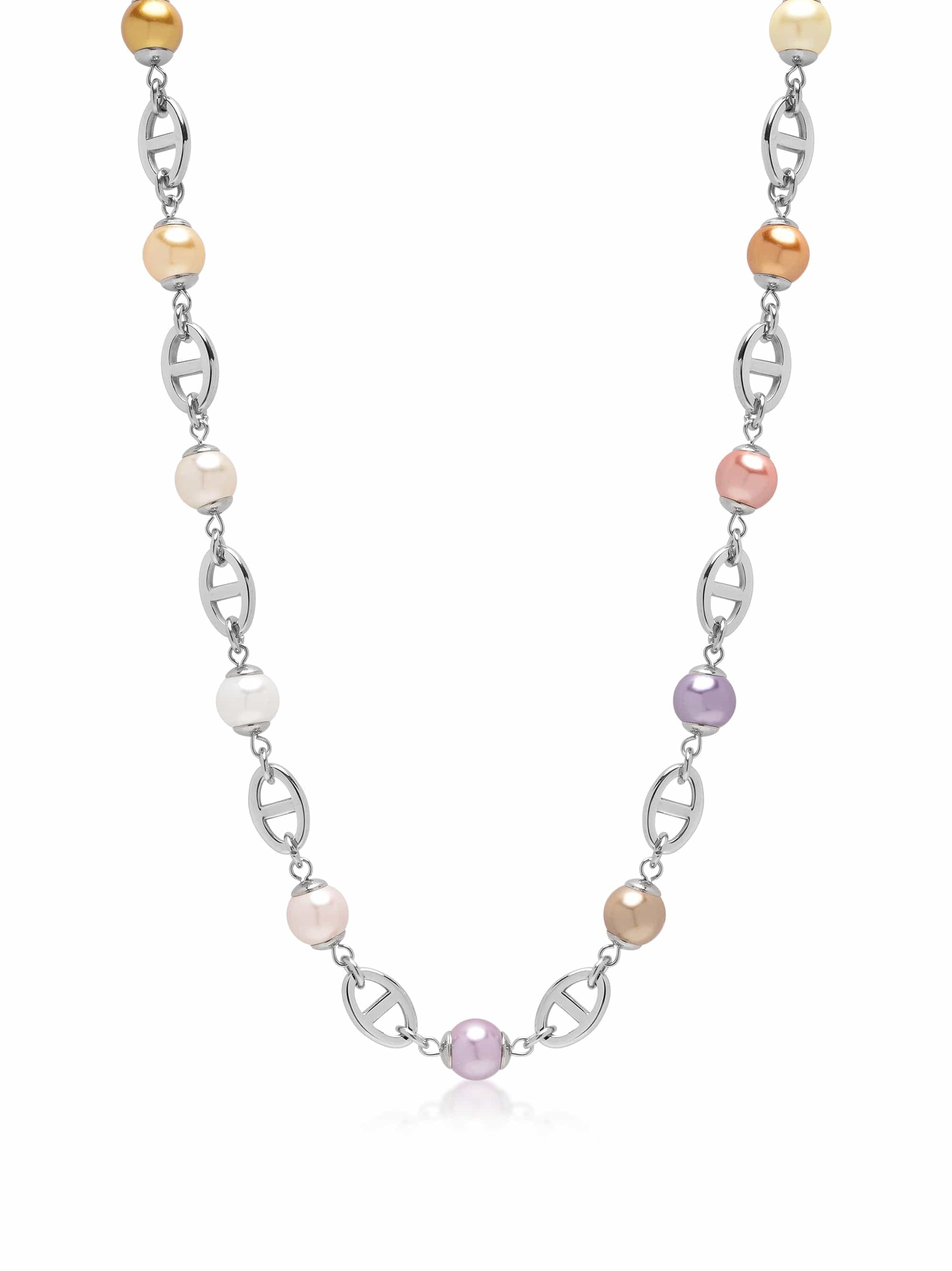 This Silver Mariner chain, paired with multicolored pearls, is bold and unforgettable. Wear it solo for sleek sophistication or layer it with another pearl piece to turn up the edge on your style.