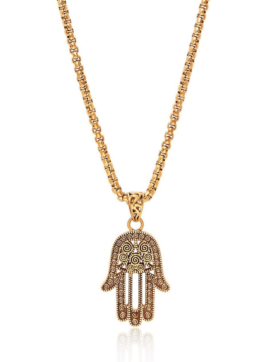 - Hamsa Hand Pendant in Stainless Steel with 18K Vintage Gold Finish