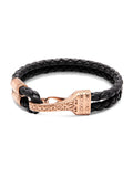 Black Leather Bracelet with Rose Gold Bali Clasp Lock