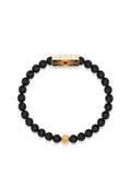A striking twist on classic symbols of love. This bracelet features a matte black onyx bead with black&white enamel detailing of the word “Amour” and a heart, representing affection and positive energy. Finished with 18K gold plating, it’s perfect for stacking or wearing alone as a bold, modern statement.
