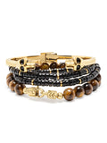 Rooted in the deep, warm spirit of November, this stack blends polished gold with Black Onyx and Tiger Eye—stones that embody strength, focus, and protection. A refined mix for powerful energy.