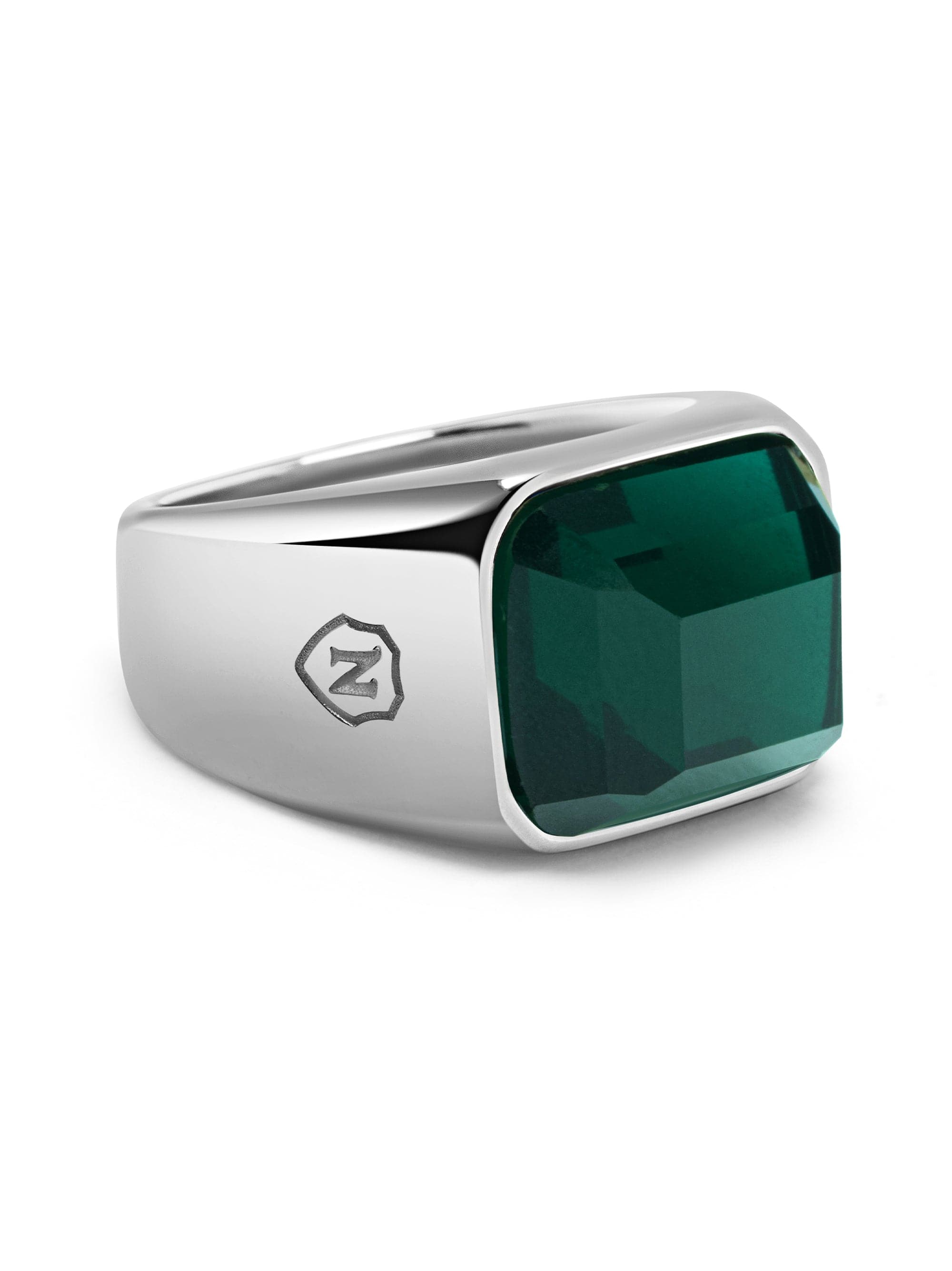 • Nialaya Men's Ring Green Zircon Signet Ring in Silver Green Zircon Signet Ring in Silver