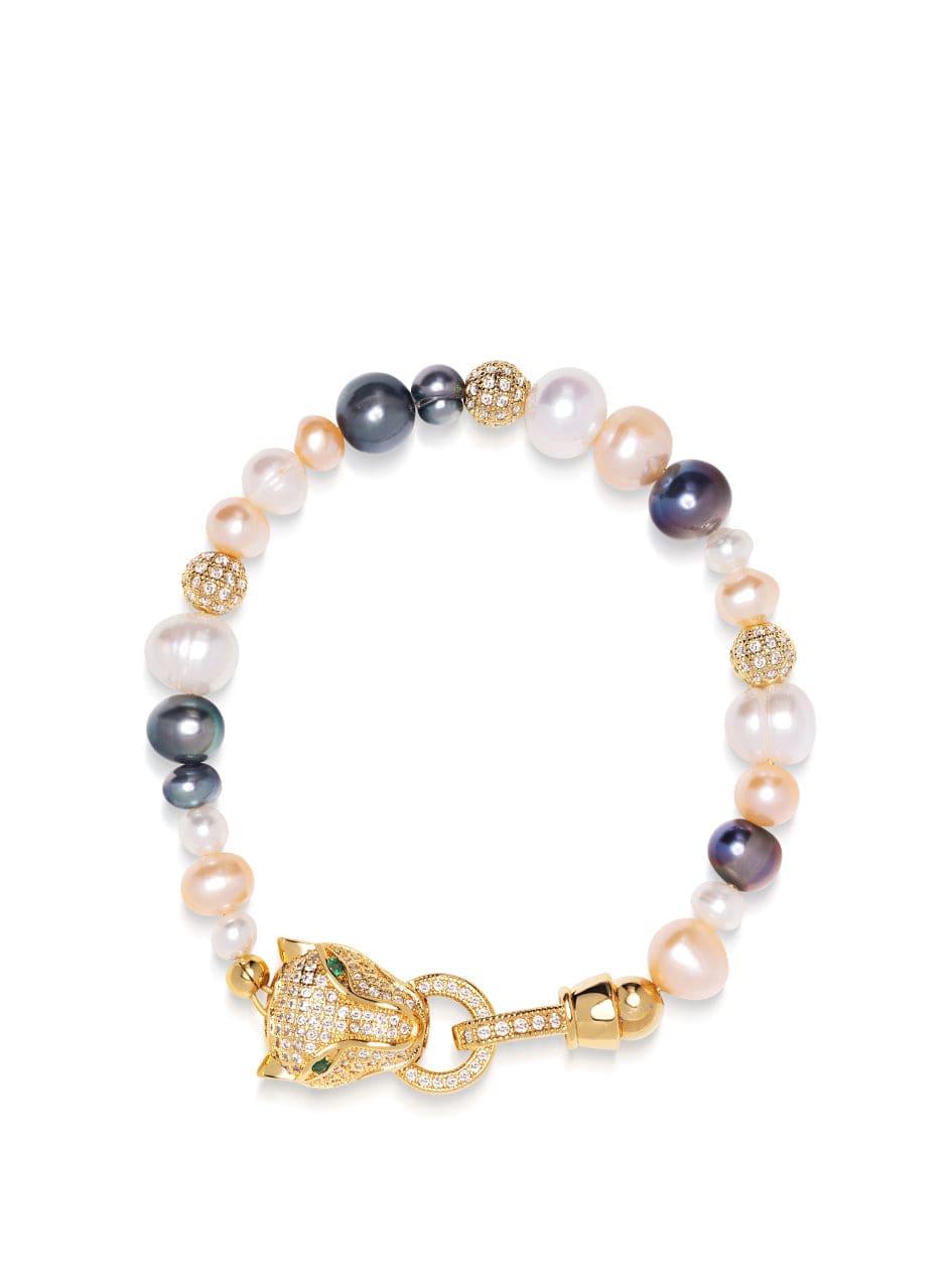 Women's Multi-Colored Pearl Bracelet with Gold Panther Head