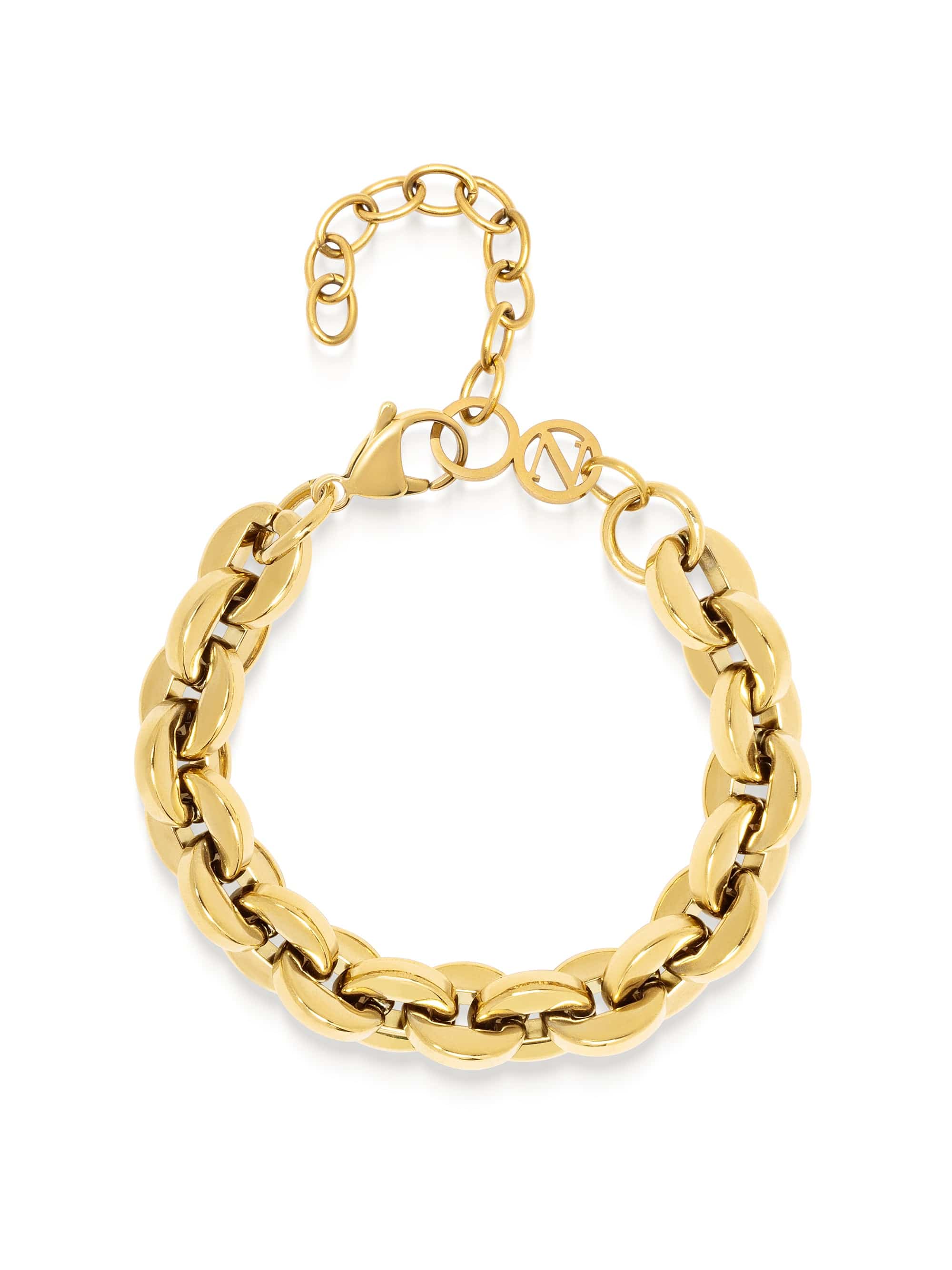 Sleek curves meet bold simplicity in the Loop Link Bracelet. Featuring rounded interlocking links with a polished finish, this piece brings a soft edge to a strong silhouette. Easy to style and made to stand out — wear it solo or stacked for a modern, laid-back statement.