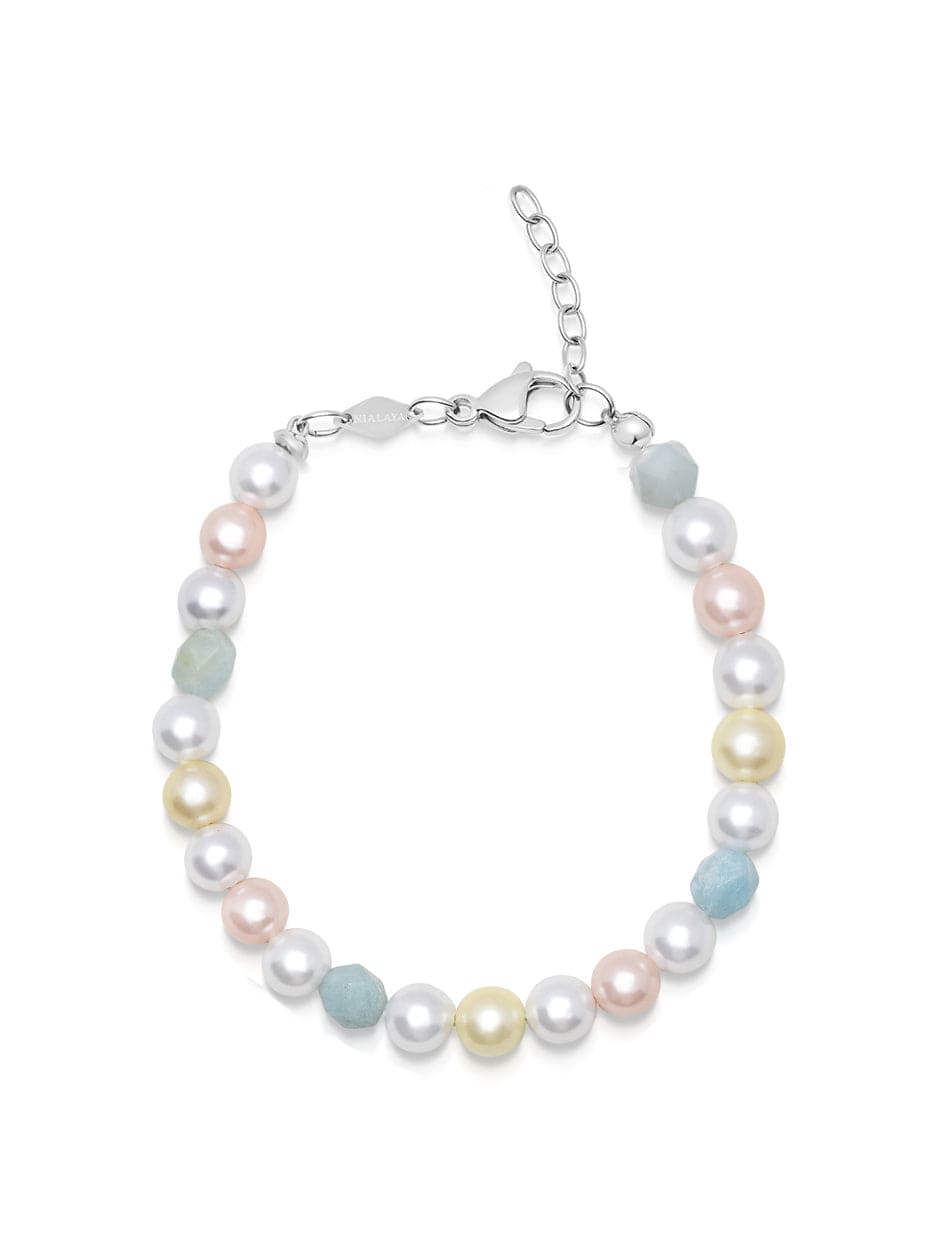 Inspired by the serene beauty of Mother Nature's waters, this delicate women's beaded bracelet has been hand-crafted in our Los Angeles studio with meticulous attention to detail. White and pastel freshwater pearls combined with faceted Amazonite create the perfect piece to add to your everyday style.