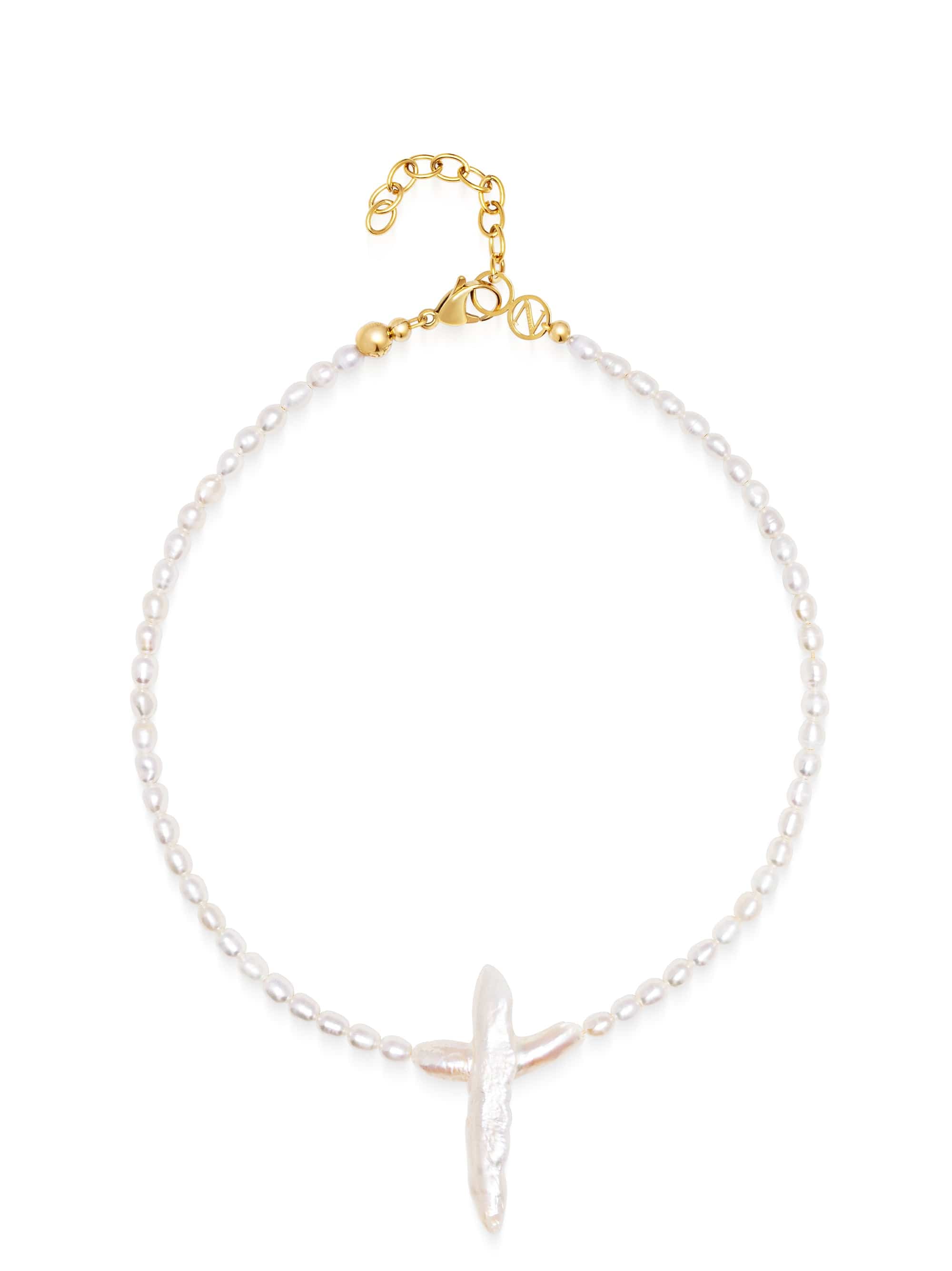 - Featuring a unique natural pearl formed in the shape of a cross as the centerpiece