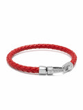 Braided Red Leather Bracelet in Silver
