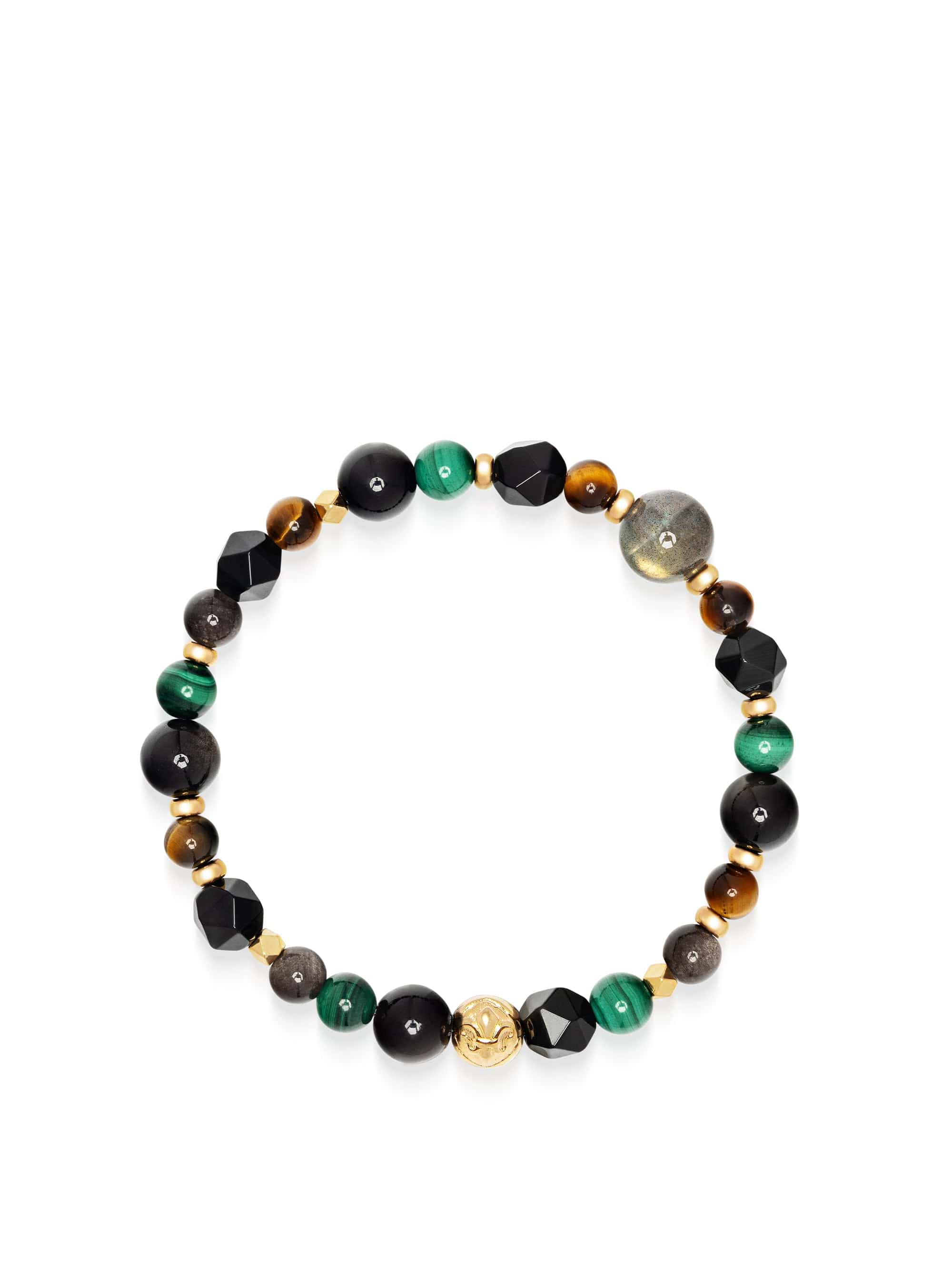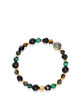 - Mixed-Stone Bracelet: 10mm Labradorite, 6mm & 8mm Green Malachite, Obsidian, Tiger Eye & Moss Agate Beads