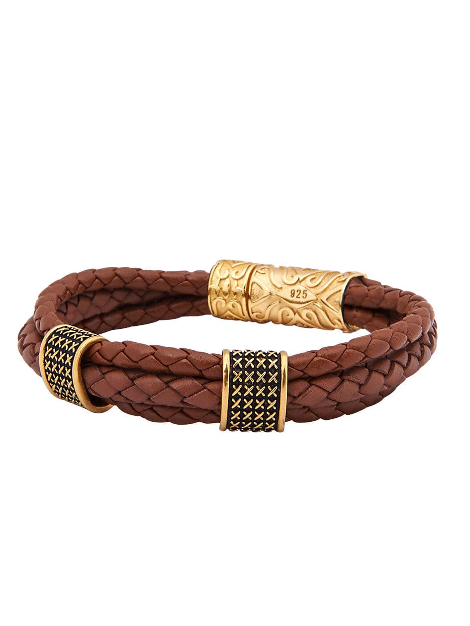 This bracelet is made with the finest braided 5mm bolo cord leather mixed with 2 pieces of 3mm bolo cord. Each cord is tightly woven and customized for Nialaya. The leather has beautiful look, feel and style.We have added 2 beautiful sterling silver beads which are finished with a heavy 18K gold-plating. The bracelet securely locks with our new solid sterling silver signature tube lock plated in 18K gold, making this piece luxurious and unmatched in quality and value.