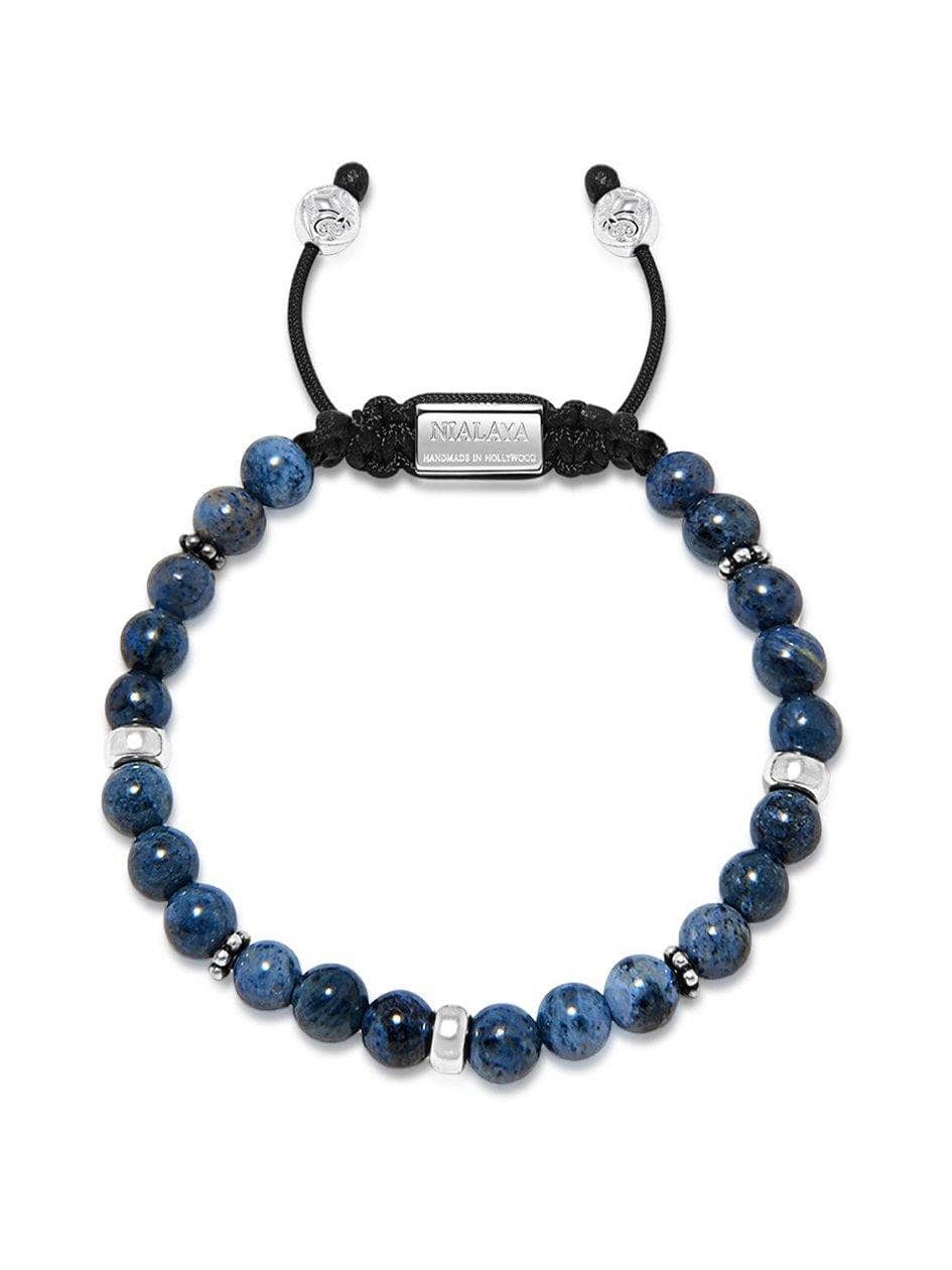 Men's Beaded Bracelet With Blue Dumortierite And Silver