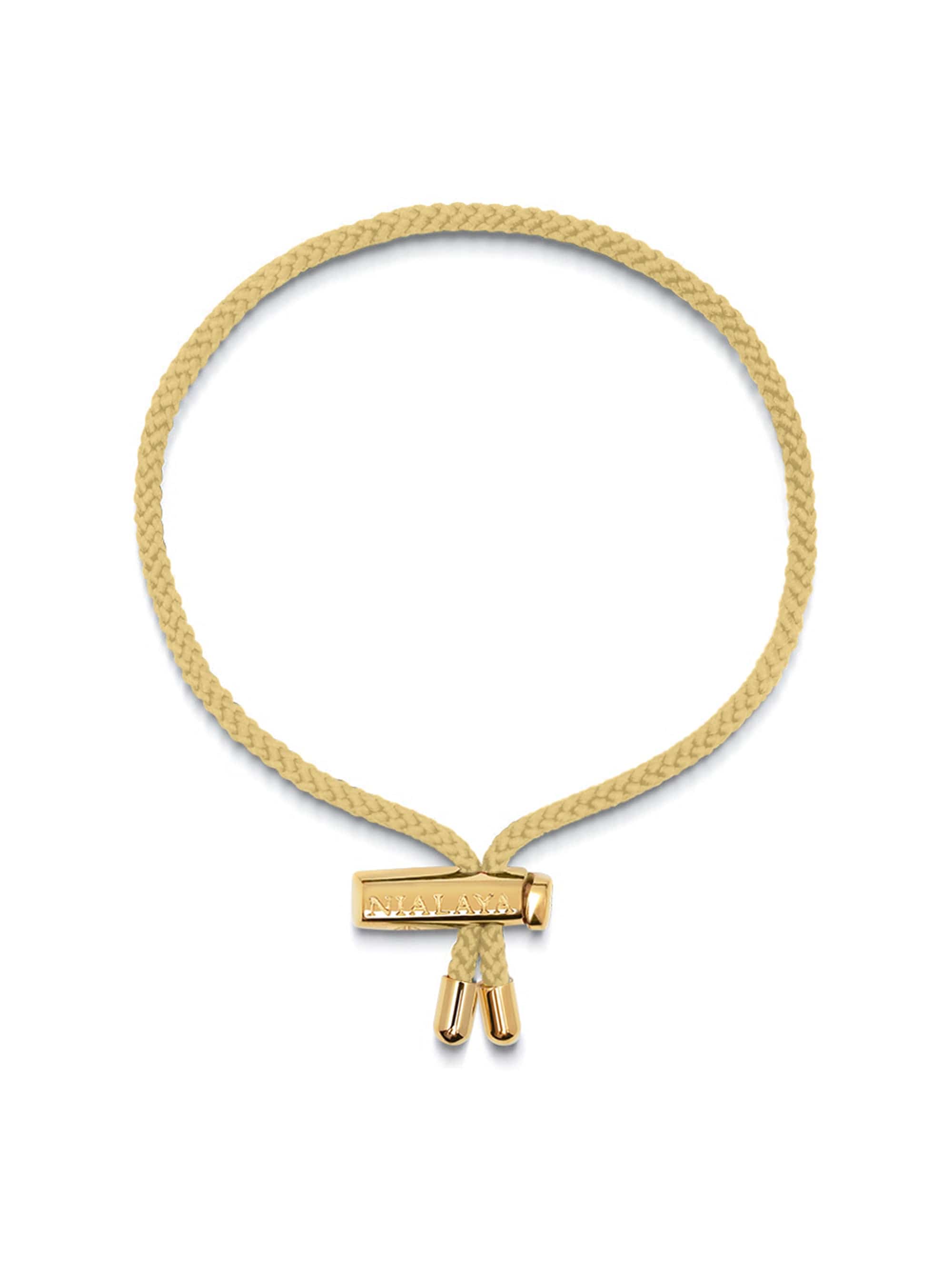 Our Beige String Bracelet is simple yet unique. The adjustable, gold-plated lock features our signature Dorje engraving, making this piece your everyday favorite.