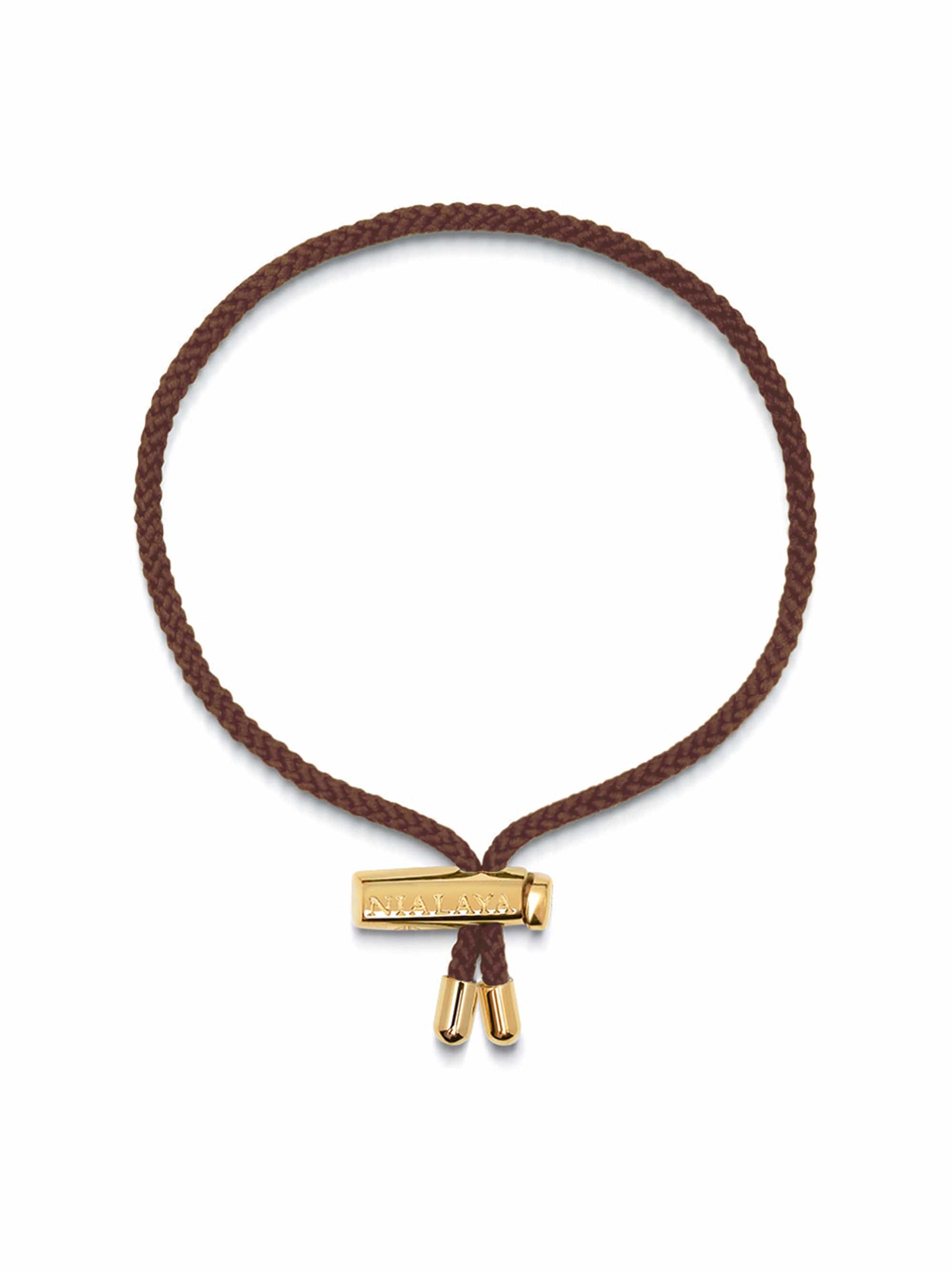 Men's Brown String Bracelet with Adjustable Gold Lock