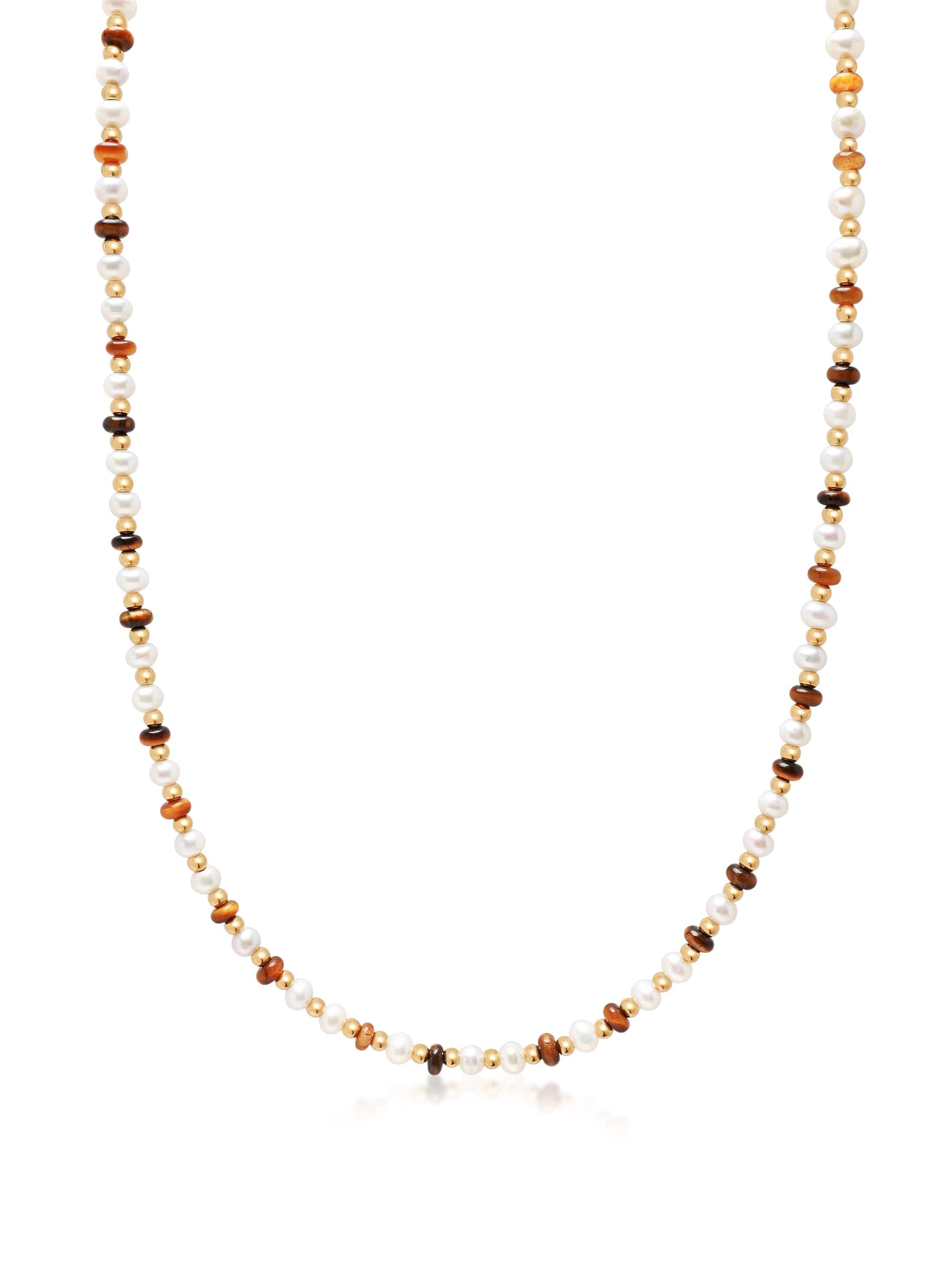 Men's Mini Beaded Necklace with Pearls and Tiger Eye