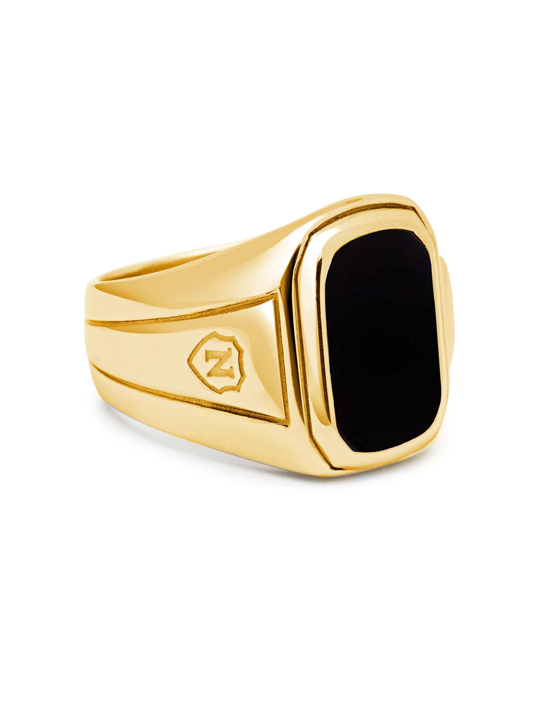 Men's Oblong Gold Plated Signet Ring with Onyx