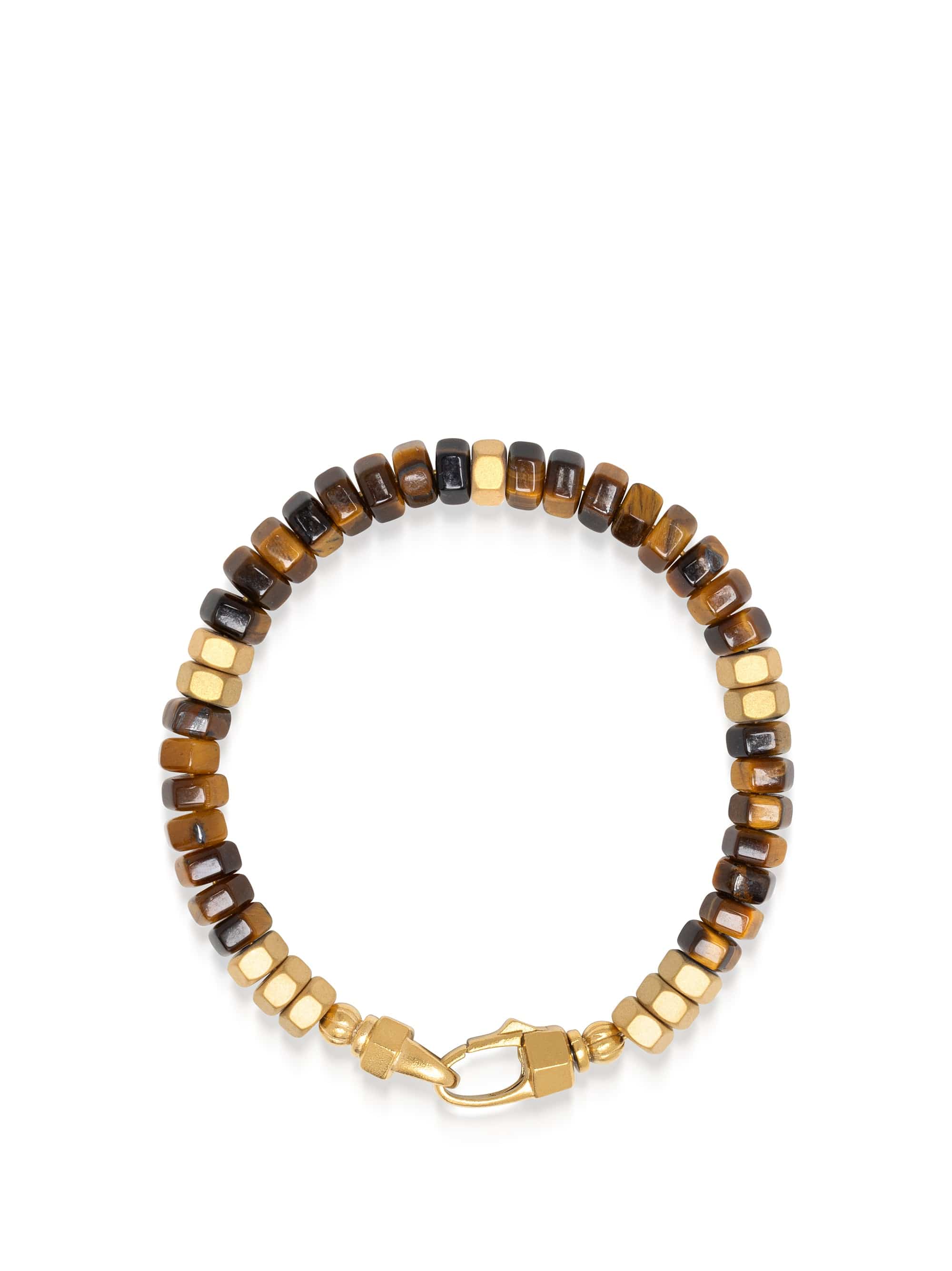 Men's Hexagon Beaded Bracelet with Tiger Eye and Gold