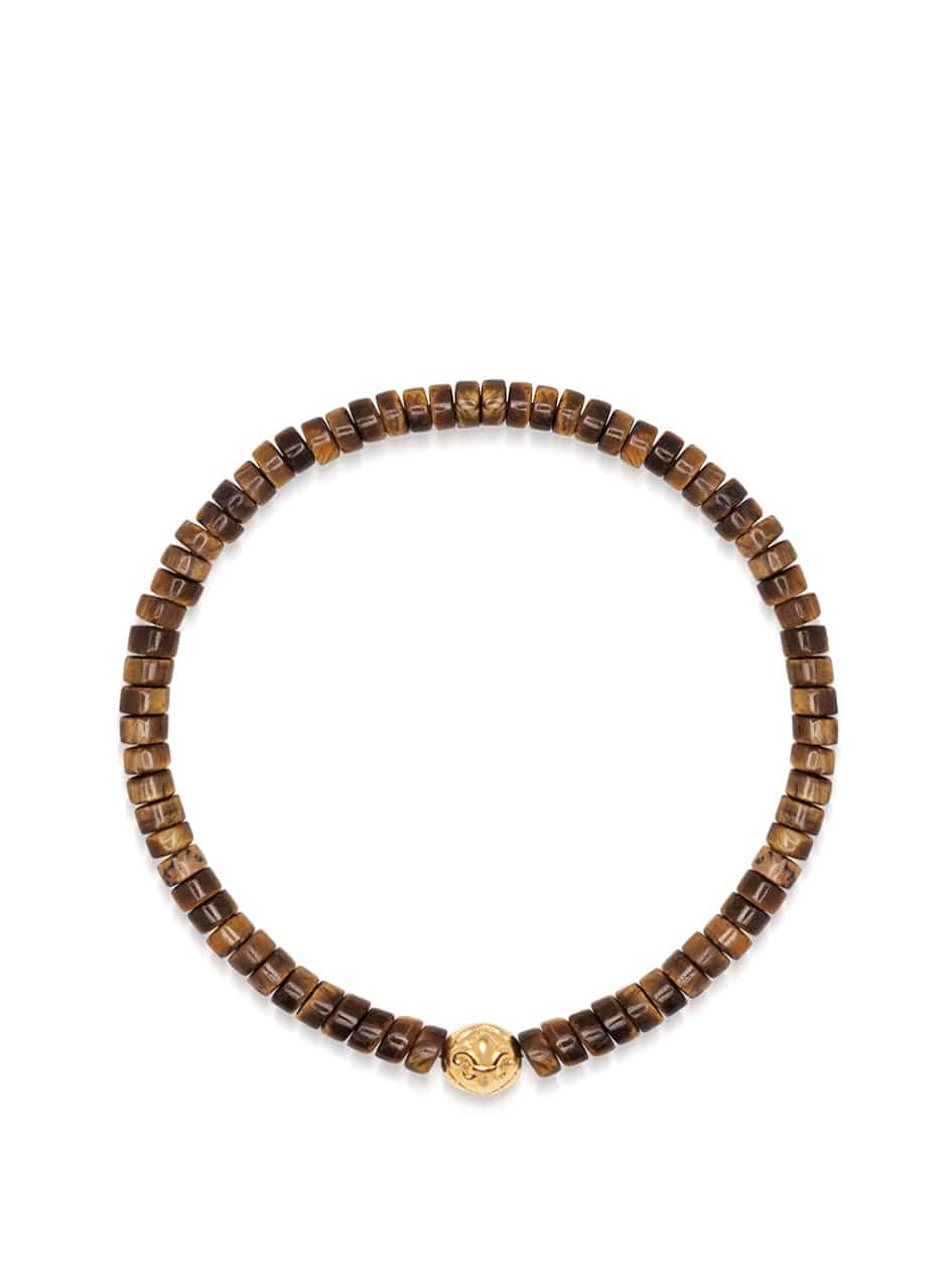 Men's Wristband with Brown Tiger Eye Heishi Beads