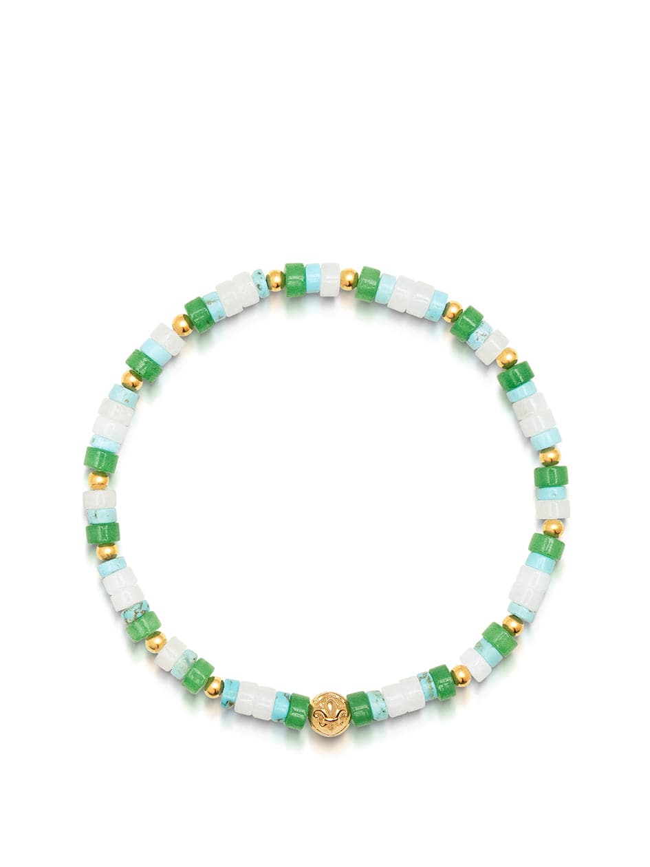 Designed and strung by hand in our Los Angeles studio with vibrant green aventurine and turquoise, this piece is the perfect addition to complete your everyday look. Layer it with a bunch of bracelets for the perfect summer look!