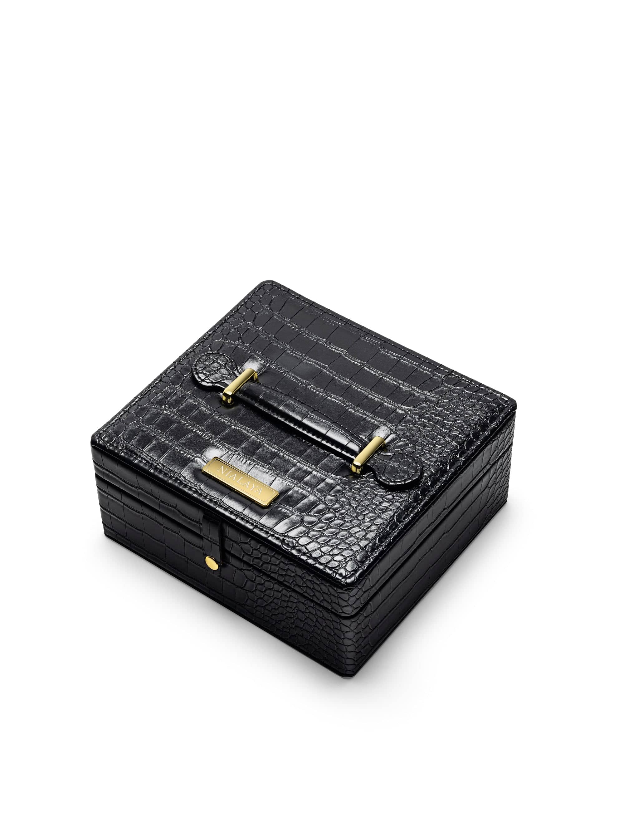 Elevate the way you store and display your most treasured pieces with the Nialaya Jewelry Box — a handcrafted jewelry box designed in luxurious black crocodile-embossed leather with soft velvet lining. Featuring precision-engineered compartments for rings, bracelets, necklaces, and earrings, it embodies both elegance and functionality.