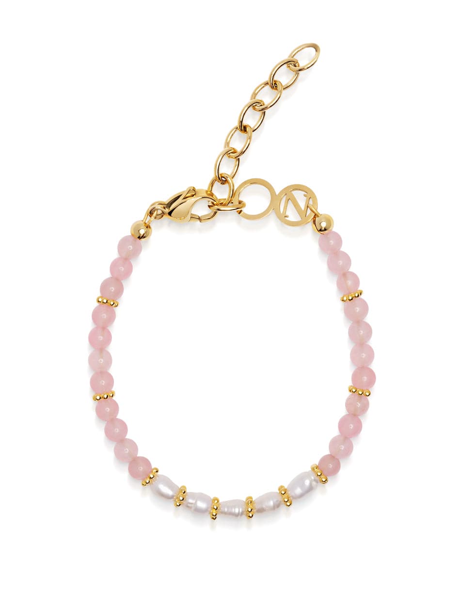 Women's Beaded Bracelet with Pink Opal and Mini Pearls