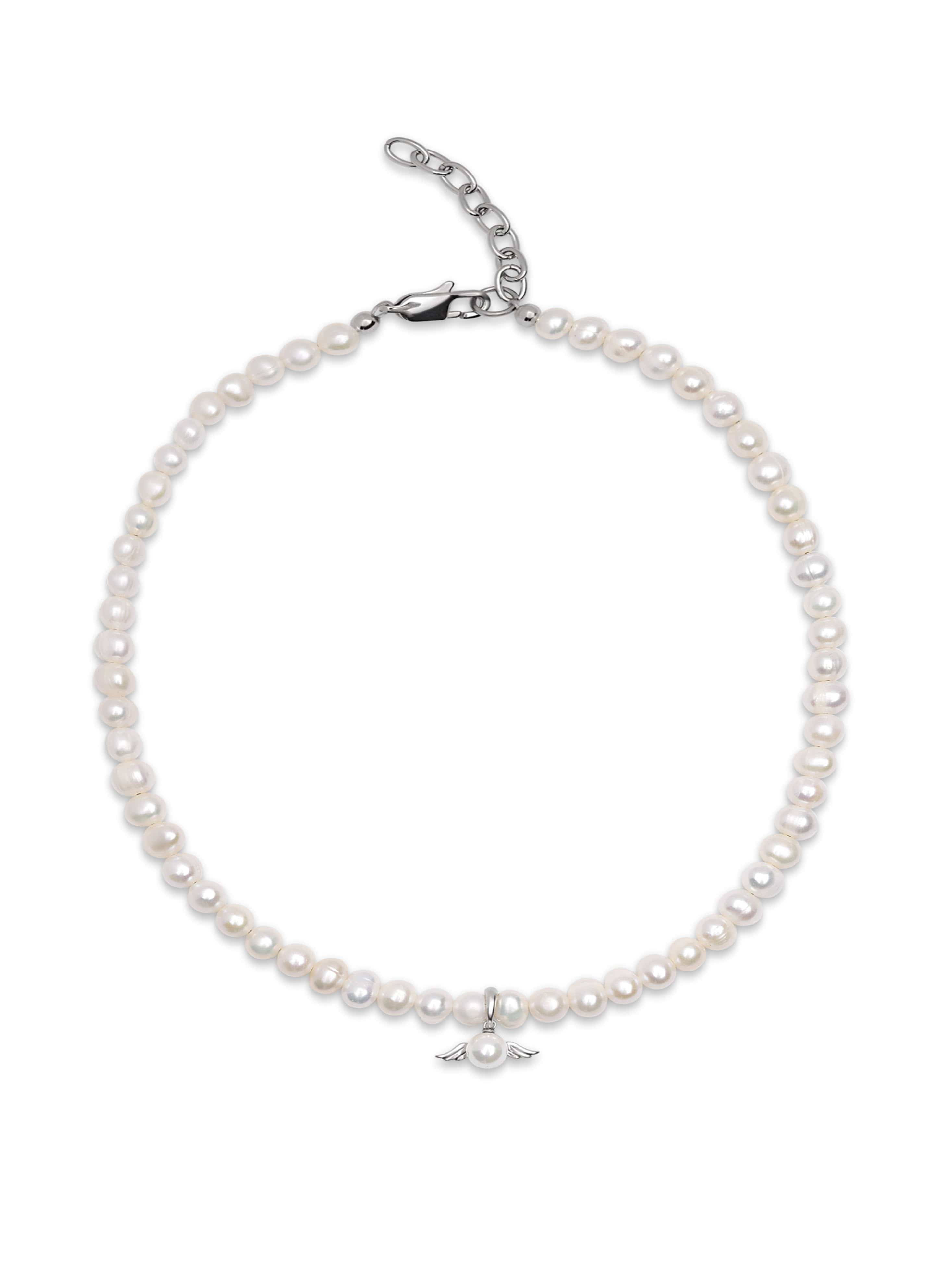 Strung by hand in our LA studio from beautiful baroque freshwater pearls, this necklace will add uniqueness to all your looks. The cute angel wing pendant is adorned with a 6mm pearl. We use cultured pearls from oysters and freshwater mussels that we select by hand for all our jewelry.