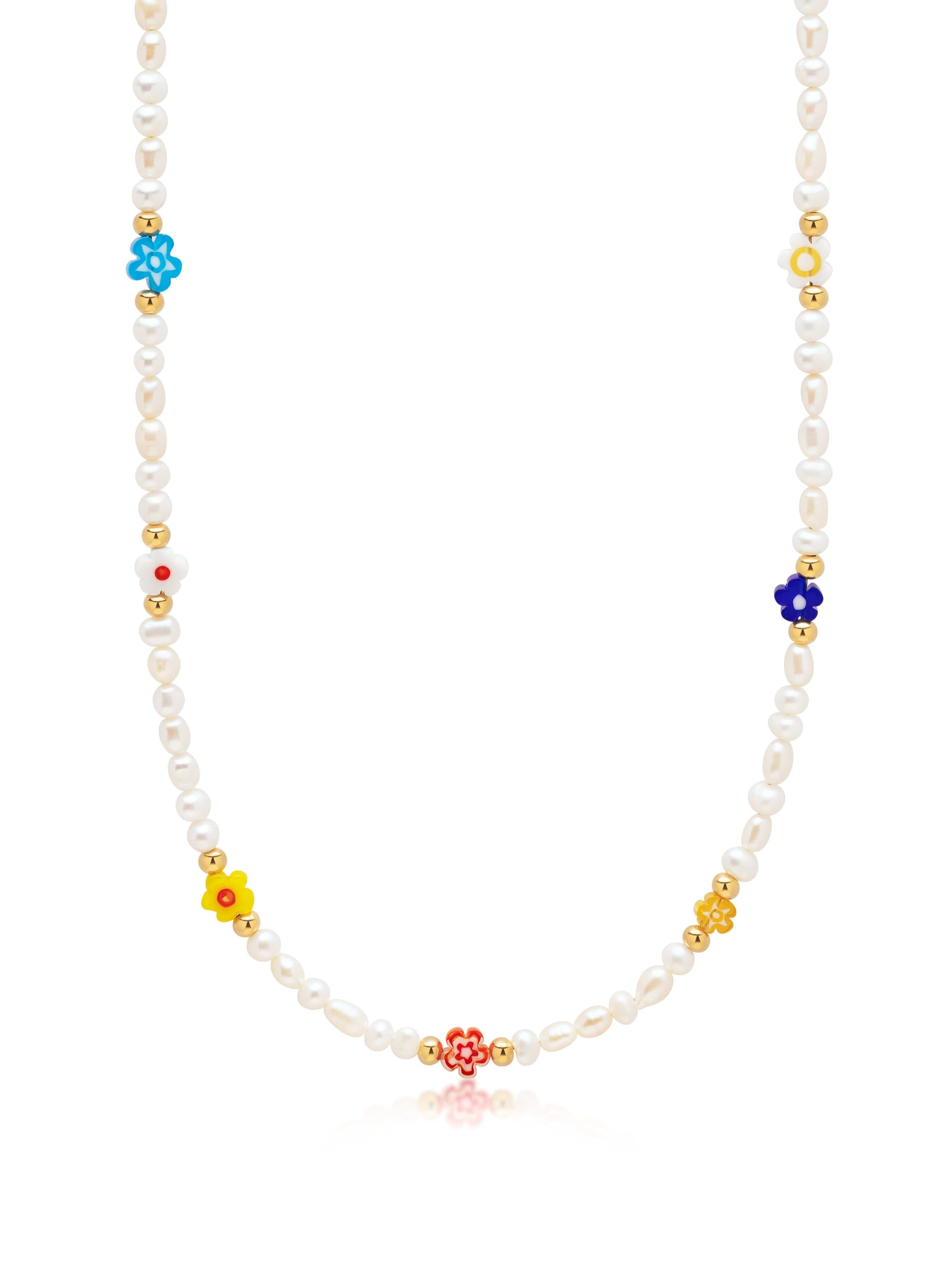 Strung by hand in our LA studio from beautiful baroque freshwater pearls, this necklace will add uniqueness to all your looks. The whimsical colorful class beads make this piece perfect for your summer look. Wear this stunning piece solo or layered. We use cultured pearls from oysters and freshwater mussels that we select by hand for all our jewelry.