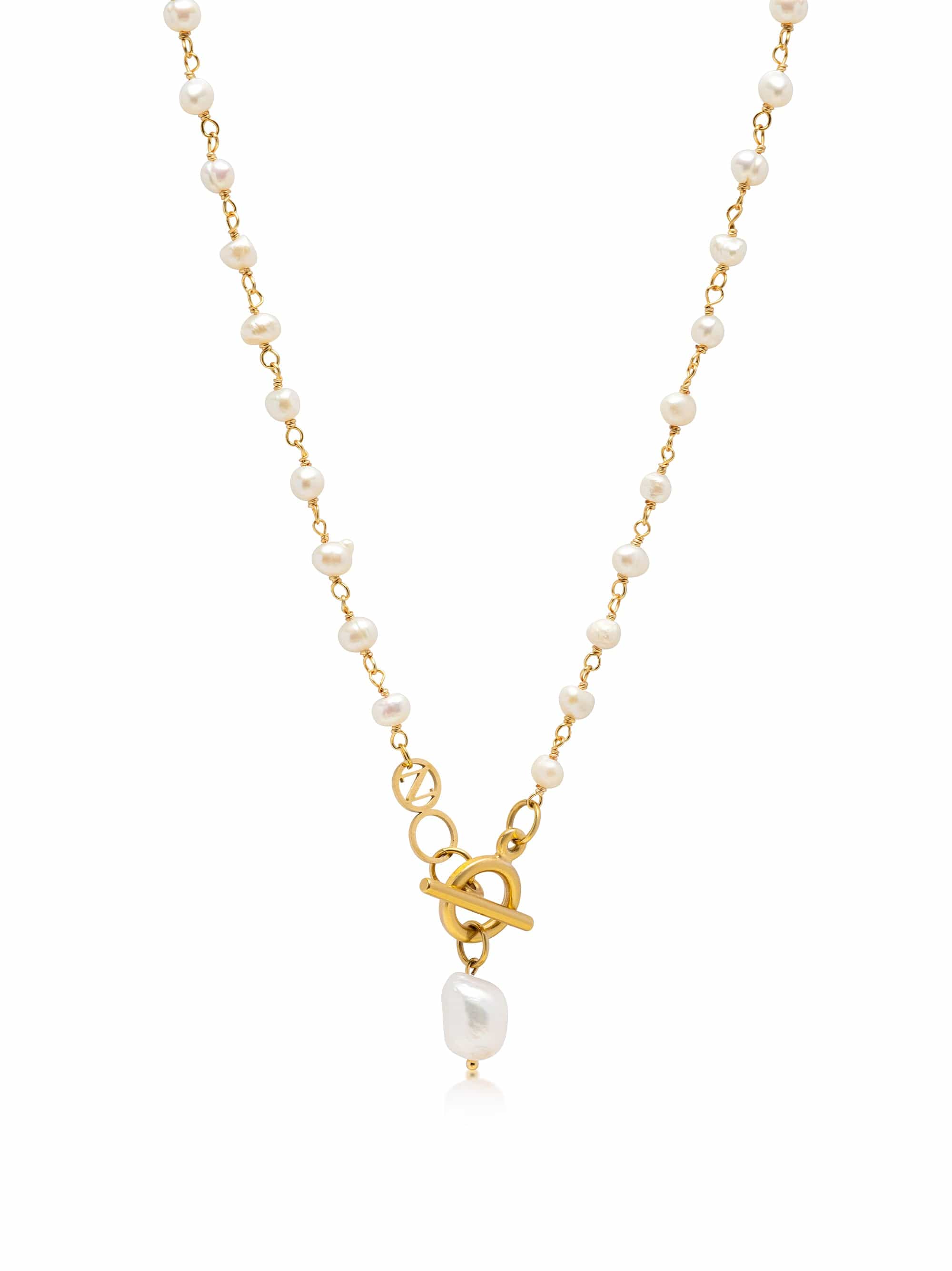 - Pearl Pendant on Stainless Steel Chain with Gold Plating